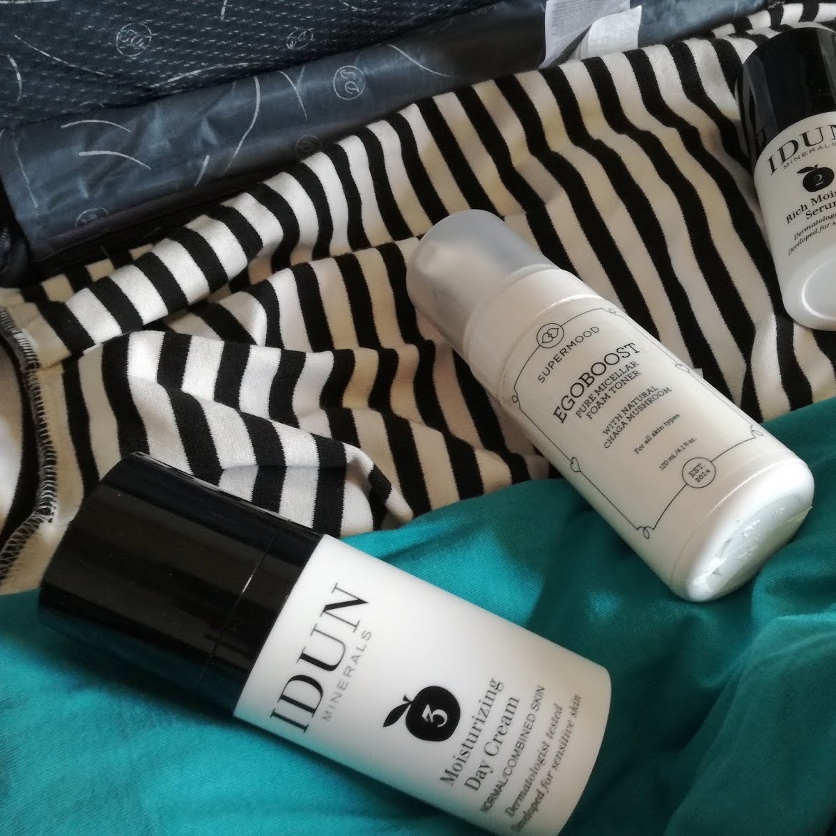 Na svojem zadnje potovanje po Italiji sem vzela samo 3 izdelke za nego kože (in kremo za sončenje za obraz). In veš kaj? Nazaj sem prišla z enako lepo, če ne še lepšo kožo kot pred potovanjem. To se mi redko zgodi, saj ponavadi pridem domov z grozno suho kožo. Razlog? Moja lenoba, saj na potovanjih z največjim veseljem uporabljam res čimmanj izdelkov.S sabo sem vzela 3 izdelke iz spletne trgovine Kozmetika-Moja, ki je moje odkritje leta! Idun Minerals so mi z vsako uporabo bližji, Supermood Egoboost pa mi je najprej padel v oči zaradi svoje prikupne embalaže.