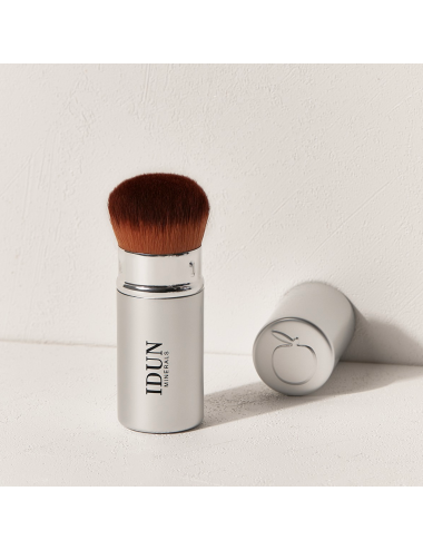 Zložljiv IDUN Minerals čopič je nepogrešljiv v vsaki toaletni torbici. Ker je "zložljiv", to pomeni da je klasične kabuki oblike, z potiskom ročaja not in ven, pokažemo ali skrijemo čopič. Da se dodatno zagotovi čistost pčetin, ima čopič dodan pokrovček. Na ta način se - četudi se čopič strese po torbici, pade na tla, dotika drugih predmetov - glava čopiča in njegove ščetine ohranijo čiste ne brez umazanije.