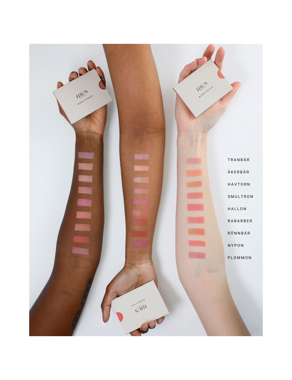 Odtenek Rönnbär je krasne opečnato koralno oranžne barve, ker so rdečila izdelana iz super prečiščenih naravnih mineralov, so barve zelo intenzivne. Nanos je enostaven, ker so naravni minerali se tudi krasno in brez težav zabrišejo na licih, ne puščajo ostrih barvnih robov. Barve rdečil in bronzerjev so vsestransko uporabne, lahko jih nanesete na veke kot podlago ali senčilo, na lica ali vmešate v dnevno kremo za obraz ali telo.