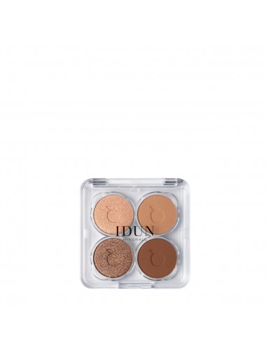 IDUN Minerals mini paletka senčil Gullviva vsebuje štiri skrbno izbrane mineralne odtenke za naraven do izrazit videz oči. Formula z izredno prečiščenimi mineralnimi pigmenti zagotavlja svilnat nanos, dolgo obstojnost in občutek lahkotnosti na vekah. Senčila so veganska, brez dišav in dermatološko testirana, zato so primerna tudi za občutljive oči in uporabnice kontaktnih leč. Idealna paletka za dnevni make-up ali elegantno večerno senčenje.