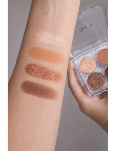 Formula je veganska, brez dišav in dermatološko testirana. Zaradi čistih sestavin je primerna tudi za občutljivo kožo, razdražene oči ali uporabnike kontaktnih leč. Senčila se lepo zabrisujejo, ne poudarjajo gubic ter omogočajo enakomeren, profesionalen nanos.