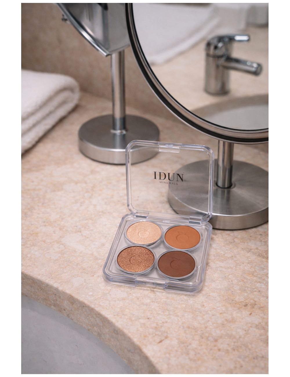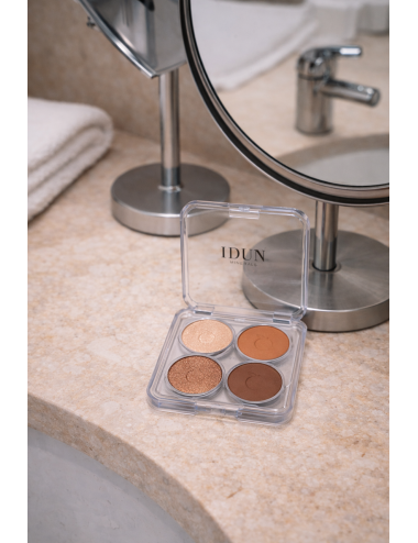 IDUN Minerals Mineral Eyeshadow Palette Gullviva je kompaktna 4-v-1 mini paletka mineralnih senčil, zasnovana za enostavno ustvarjanje različnih videzov oči – od subtilnega dnevnega make-upa do bolj poudarjenega večernega videza. Izredno prečiščeni mineralni pigmenti zagotavljajo intenzivno barvo, svilnato teksturo in izjemno lahko obstojnost brez občutka teže na vekah.