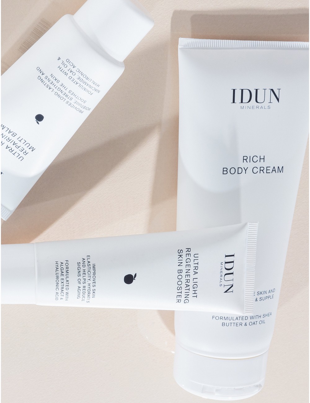 IDUN Minerals obnovitveni balm za obraz je nekoliko gostejše teksture, ki pa se ob nanosu na kožo hitro vpije in ne pušča neprijetnega in mastnega občutka. Balm pomaga pri hitrejem obnavljanju kože, njenem lepšem videzu, istočasno pa jo varuje pred zunanjimi vplivi mraza, vetra in nizkih temperatur.